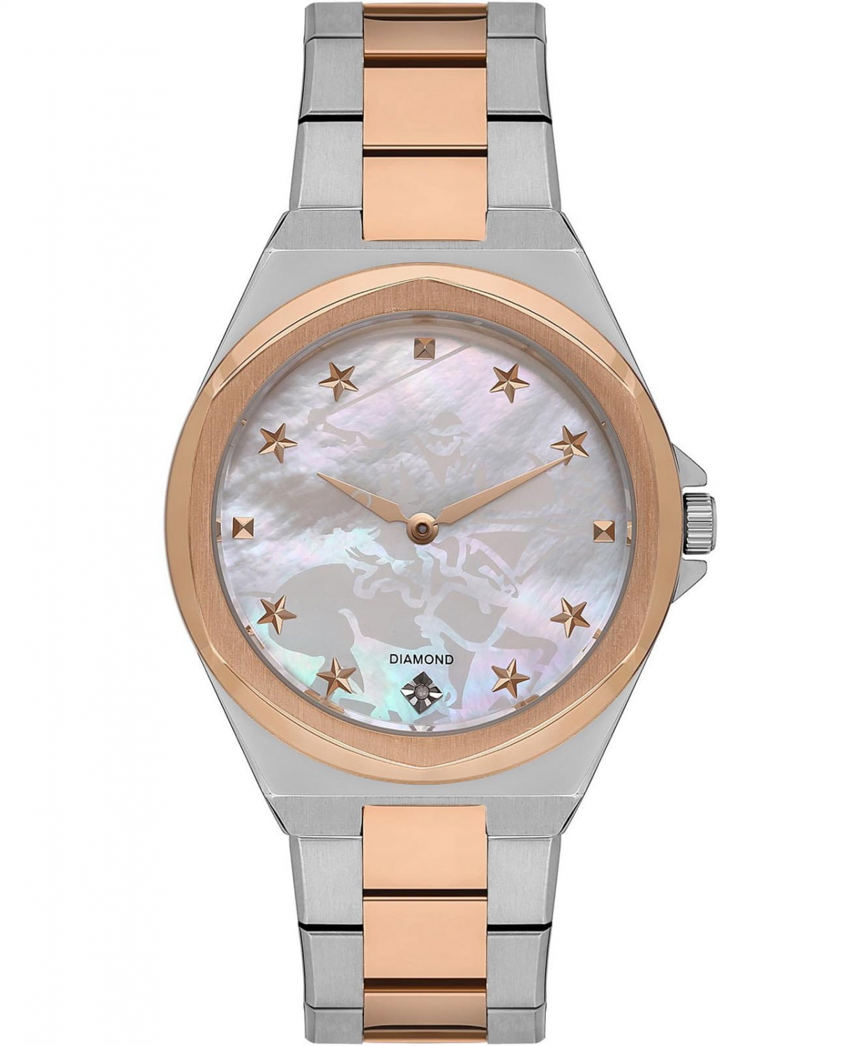 Женские наручные часы с надёжным кварцевым механизмом. Минеральное стекло устойчивое к мелким механическим повреждениям. Корпус и браслет часов изготовлены из нержавеющей стали. Стальной браслет с частичным IP-покрытием на раскладной застёжке. Класс водозащиты: 50 метров, позволит защитить корпус от случайных брызг или капель дождя. Циферблат инкрустирован синтетическим бриллиантом.
