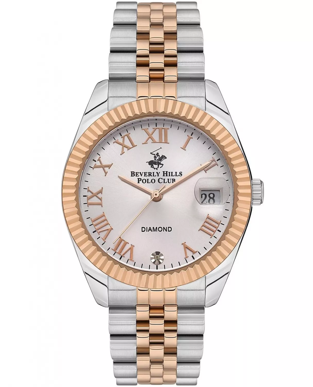 Женские наручные часы с надёжным автоматическим механизмом. Минеральное стекло устойчивое к мелким механическим повреждениям. Корпус часов изготовлен из нержавеющей стали. Стальной браслет с частичным IP-покрытием на раскладной застёжке. Окошко даты находится в положении 3 часа. Класс водозащиты: 50 метров, позволит защитить корпус от случайных брызг или капель дождя. Циферблат инкрустирован синтетическим бриллиантом.