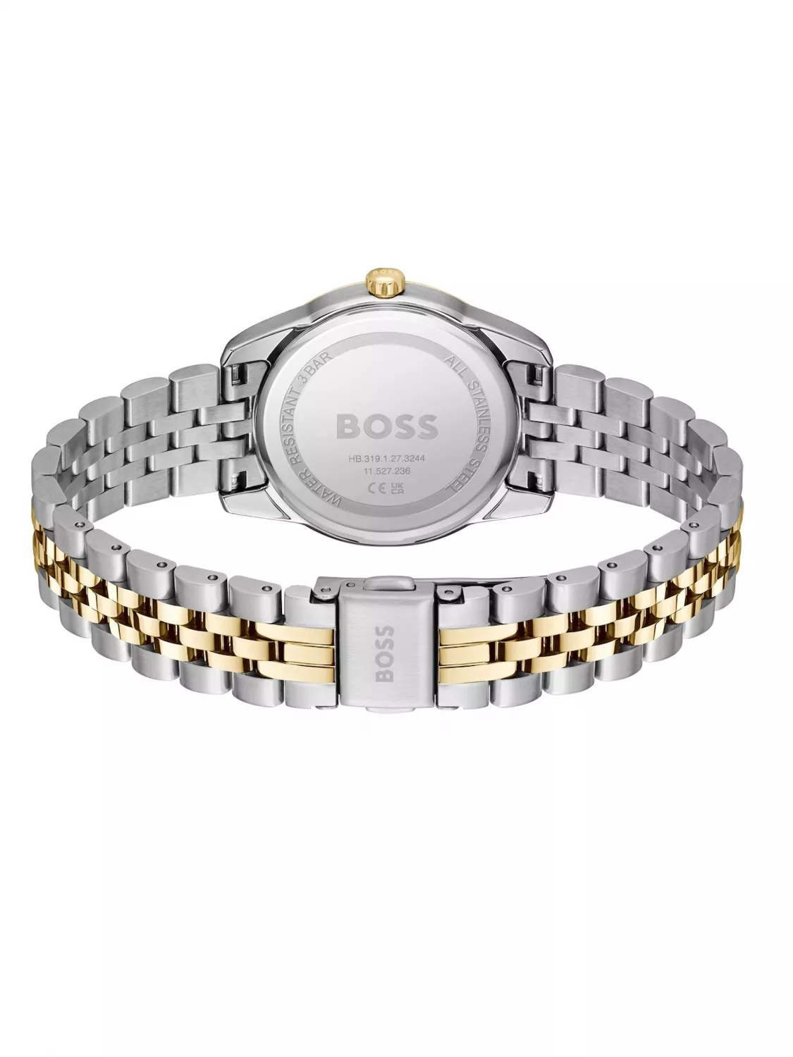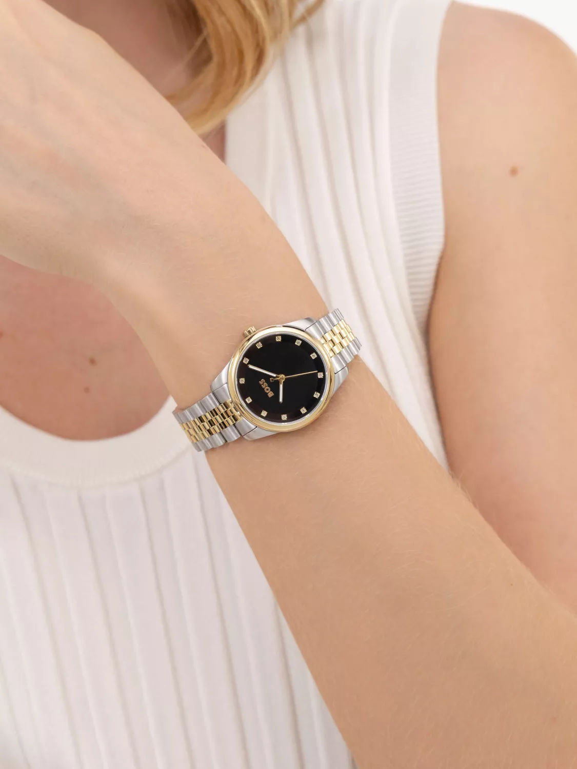 Корпус и браслет часов из нержавеющей стали с частичным PVD покрытием. Циферблат с минеральным стеклом устойчивым к появлению царапин.