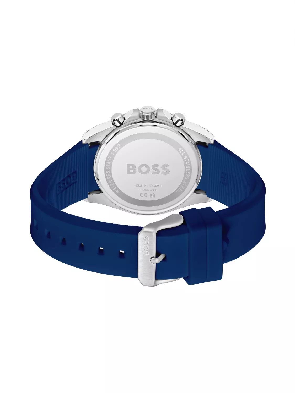 Корпус часов выполнен из нержавеющей стали. Функции: хронограф, дата. Диаметр 41 мм. Силиконовый ремешок с классической застёжкой. Водозащита 5 bar.