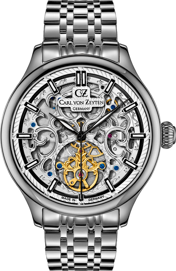 Изысканный дизайн этих часов с завораживающим скелетонизированным циферблатом смотрится очень элегантно в своей невесомости. Скелетонизированные мужские часы St. Georgen с круглым корпусом. В механизме 22 камня. Циферблат с накладными метками в виде штрихов. Вороненые винты. Прозрачная задняя крышка с минеральным стеклом. Надежный стальной браслет с раскладывающейся застежкой.