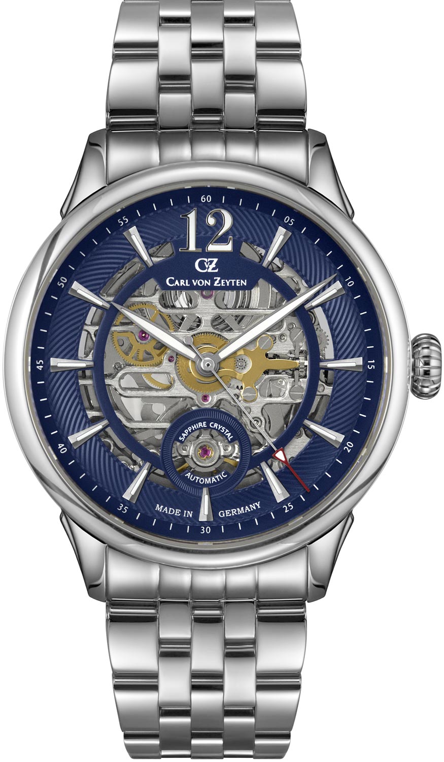 Этот скелетон позволит вам насладиться отточенной работой безупречного часового механизма. Schramberg. Скелетонизированные мужские часы. Циферблат с метками в виде штрихов защищен прочным сапфировым стеклом. Рифленая заводная головка. Браслет с раскладывающейся застежкой.