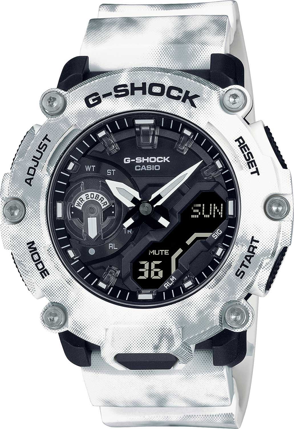 Надежные часы с глубоким и объемным циферблатом прекрасно подойдут для любителей активного образа жизни. G-Shock Frozen Forest. Новая серия часов со структурой Carbon Core Guard. Крупный противоударный пластиковый корпус с карбоновыми волокнами более прочный и, в то же время, более легкий. Этот же материал защищает внутренний модуль от повреждений и деформаций при ударах. Двойная светодиодная подсветка позволяет видеть в полной темноте не только аналоговый циферблат, но и цифровой дисплей. Послесвечение. Цвет подсветки: белый. Необритовое светонакопительное покрытие обеспечивает длительное послесвечение в темноте даже после кратковременного нахождения на свету. 12-ти и 24-х часовой формат времени. Секундомер с двумя точностями показаний: 1/100с (до 1ч) и 1с (после 1ч) и временем измерения 24ч. SPLIT-хронограф. Таймер обратного отсчета от 1/1мин до 24ч с автоповтором. Мировое время – 48 городов (31 часовой пояс), всемирное координированное время (UTC). Функция включения/отключения летнего времени.