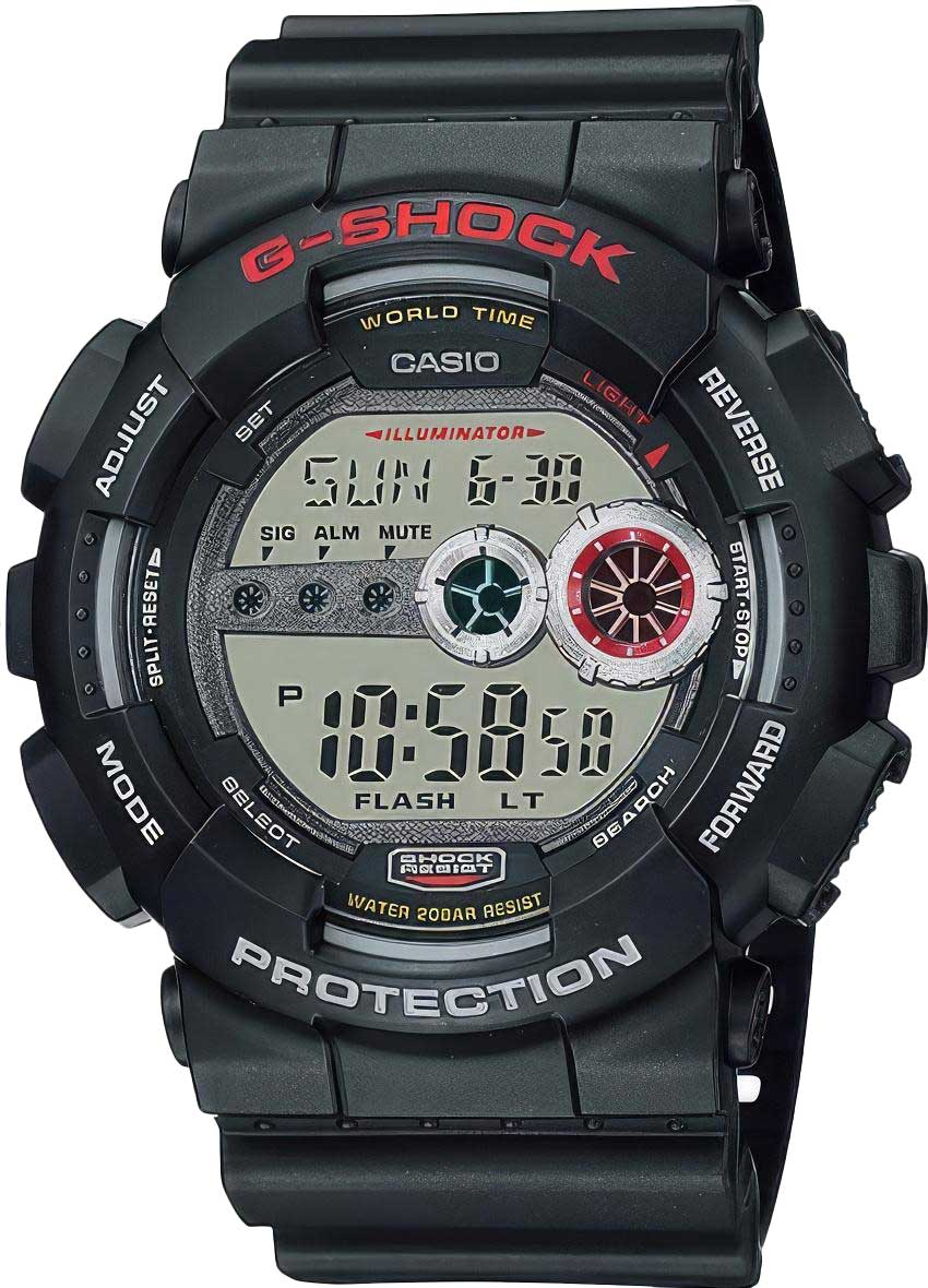 Светодиодная автоматическая супер-подсветка. При движении руки дисплей освещается ярким цветным светом. Световая индикация сигнала. Противоударный корпус защищает механизм от ударов и вибрации. Мировое время. Секундомер с точностью показаний 1/100с и временем измерения 24ч. Сплит-хронограф. Таймер обратного отсчета от 1мин до 60мин. 12-ти и 24-х часовой формат времени. Функция включения/отключения звука.