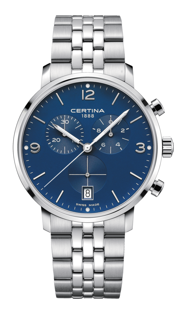 Лаконичный, современный дизайн модели DS Caimano Chronograph доказывает, насколько элегантным может быть высокоточный измерительный прибор. Модный образ дополняют роскошный стальной браслет или стильный кожаный ремешок с системой быстрой замены.