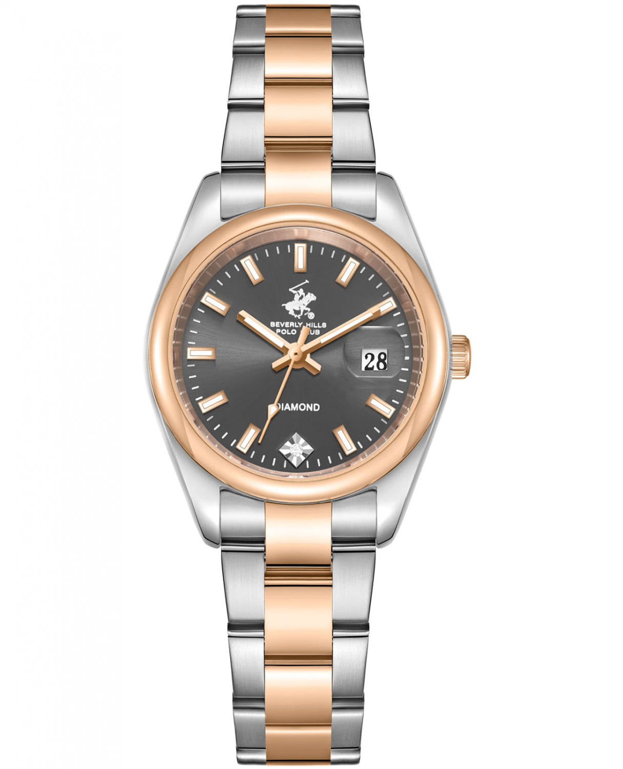 Женский аксессуар, который сочетает элегантный дизайн и практичность. Корпус выполнен из нержавеющей стали серебристого цвета, диаметром 34,5 мм, что обеспечивает долговечность и утончённый внешний вид. Надежное минеральное стекло с сапфировым покрытием защищает циферблат от царапин и обеспечивает долговечность. Метки в виде штрихов, в позиции "6 часов" инкрустирован синтетический бриллиант. Неподвижный безель с IP-покрытием цвета розового золота. Модель оснащена кварцевым механизмом, обеспечивающим высокую точность хода. Стальной браслет с частичным IP-покрытием на застёжке-бабочке с кнопками обеспечивает комфортное ношение. Стрелки и метки оснащены люминесцентным покрытием, обеспечивающим отличную видимость даже при слабом освещении. Окошко даты находится в положении 3 часа. Водозащита 30 метров позволит защитить корпус от случайных брызг или капель дождя.