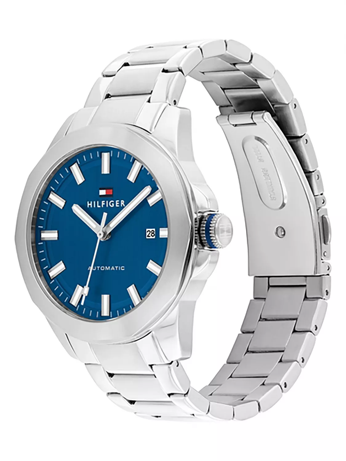 Корпус и браслет часов выполнены из нержавеющей стали. Браслет с раскладывающейся застежкой.