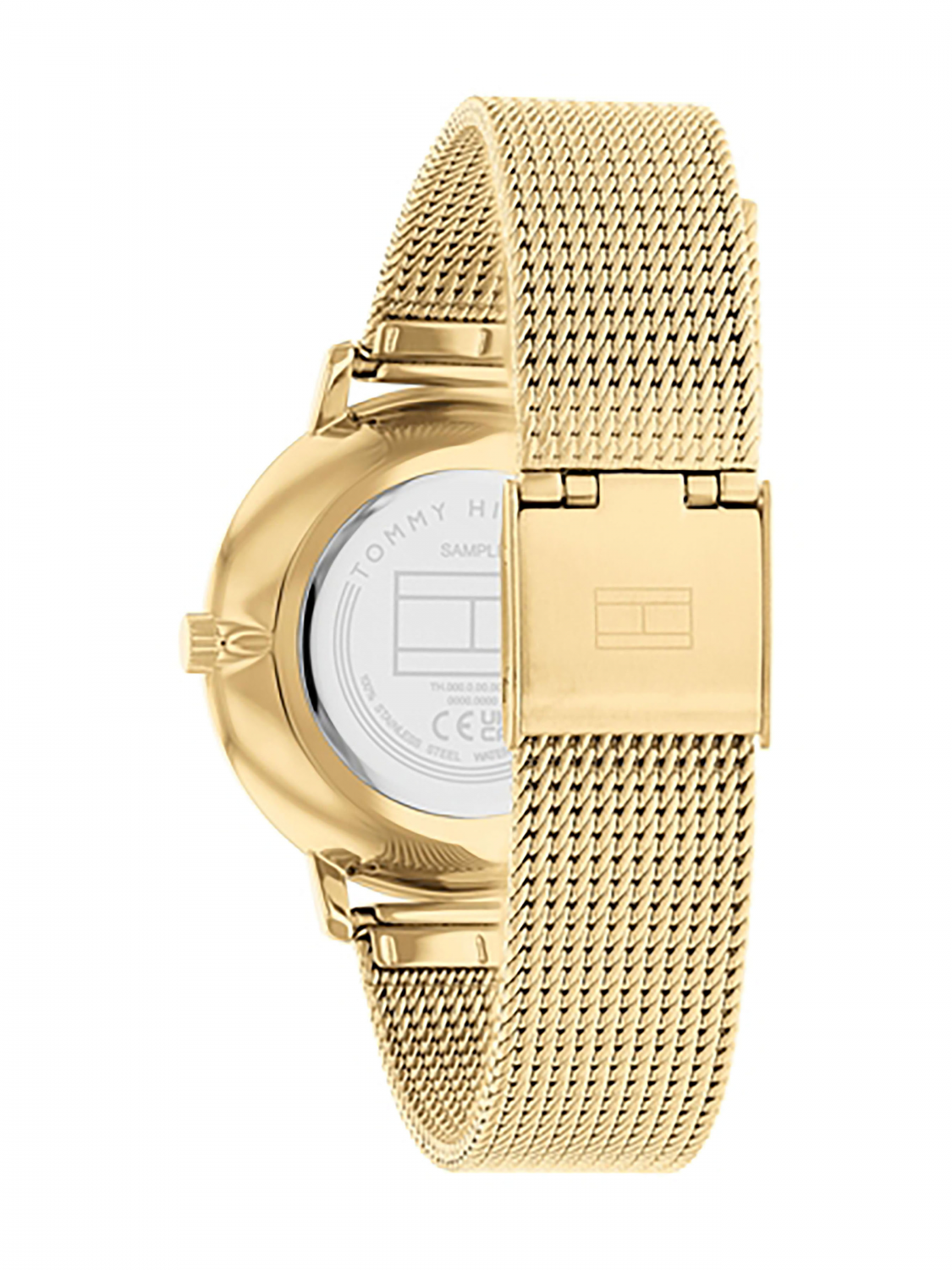 Женские кварцевые часы на стальном браслете миланского плетения. Часы с круглым корпусом. Минеральное стекло. Циферблат с метками в виде точек с кристаллами. Рифленая заводная головка.