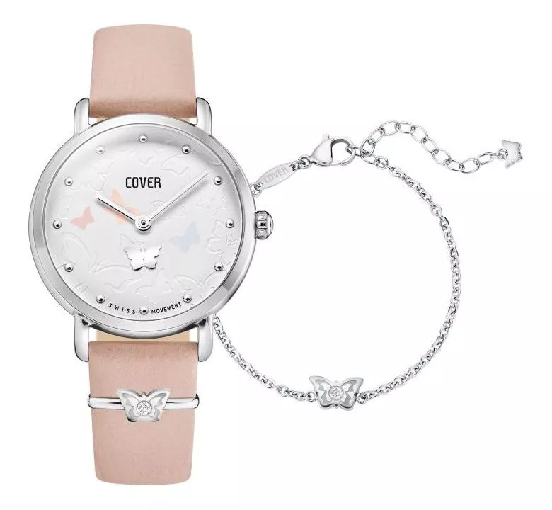 Наручные ,швейцарские часы и браслет Cover Crazy Seconds женские ,c ремешком из итальянской телячьей кожи.В часах установлено минеральное стекло.Водозащита 5АТМ.Белые оттенки циферблата придают часам нежный и изысканный вид,а бабочка используется в качестве секундной стрелки.