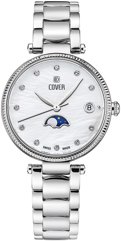 Женские швейцарские часы Cover, из коллекции Fly Me To The Moon. Утонченная женская модель на кварцевом калибре ETA. Циферблат выполнен из натурального перламутра, декорирован кристаллами Swarovski. Индикация фаз Луны. Браслет из нержавеющей стали. Размер корпуса 32 мм. Минеральное стекло с сапфировым напылением. Водозащита 5 АТМ.