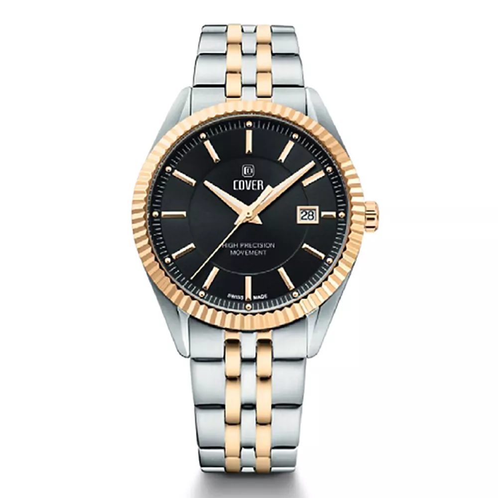 COVER CO208.04 (также известная как Alston Gent) — это элегантные мужские швейцарские наручные часы, сочетающие классический стиль с надежностью. Высокоточный швейцарский кварцевый механизм. Циферблат чёрного цвета с накладными метками и индикацией даты в положении «3 часа». Диаметр корпуса составляет примерно 40 мм.. В этой модели установлено минеральное стекло с сапфировым напылением. Корпус и браслет изготовлены из нержавеющей стали. Модель имеет двухцветное (биколор) исполнение — сочетание серебристого и золотистого цветов благодаря PVD-покрытию.