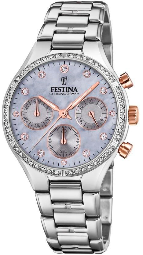 Обворожительное сияние кристаллов не оставит вас без внимания окружающих. Boyfriend. Часы-хронограф с секундомером. Метки в виде точек. Безель украшен паве из кристаллов. Рифленая заводная головка. Браслет с раскладывающейся застежкой.