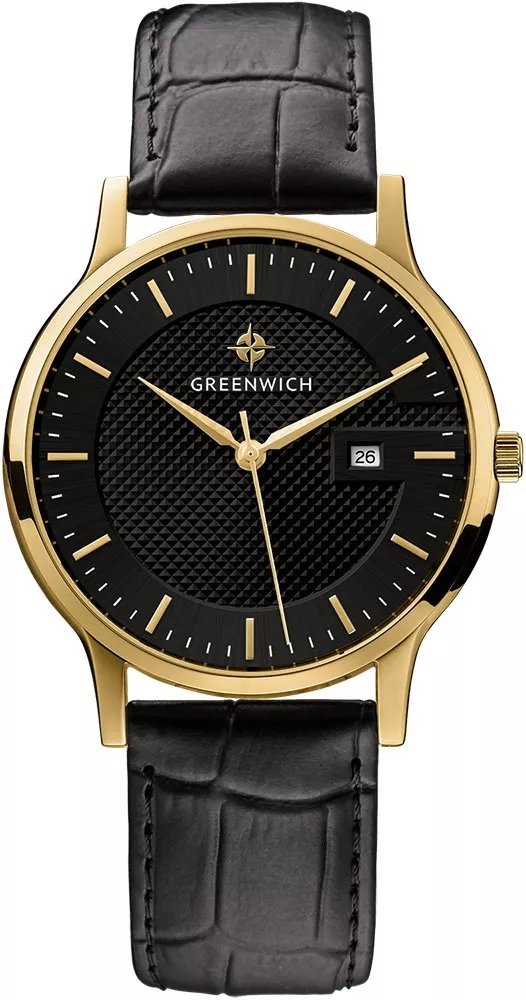 Классические часы с кварцевым механизмом смотрятся элегантно и стильно. Изысканное гильоше по центру черного циферблата придает ему объем и притягивает взгляд. Здесь расположились три стрелки: часовая, минутная и секундная. В часах предусмотрена функция определения даты — в положении «3 часа». Надежный японский механизм обеспечивает бесперебойную работу. Круглый тонкий корпус диаметром 40 мм удобно ложится на запястье. Он выполнен из нержавеющей стали с PVD-покрытием из желтого золота. Часы установлены на плотный ремешок из натуральной кожи черного цвета. Прошивка в тон делает его более стойким к износу и позволяет сохранить внешний вид ремешка даже при ежедневном использовании.