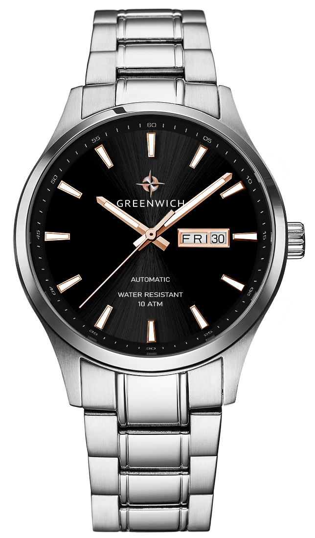 асы дополняет стальной браслет с надежной застежкой-клипсой. Автоматические часы Greenwich хорошо подходят для того, чтобы носить их каждый день.