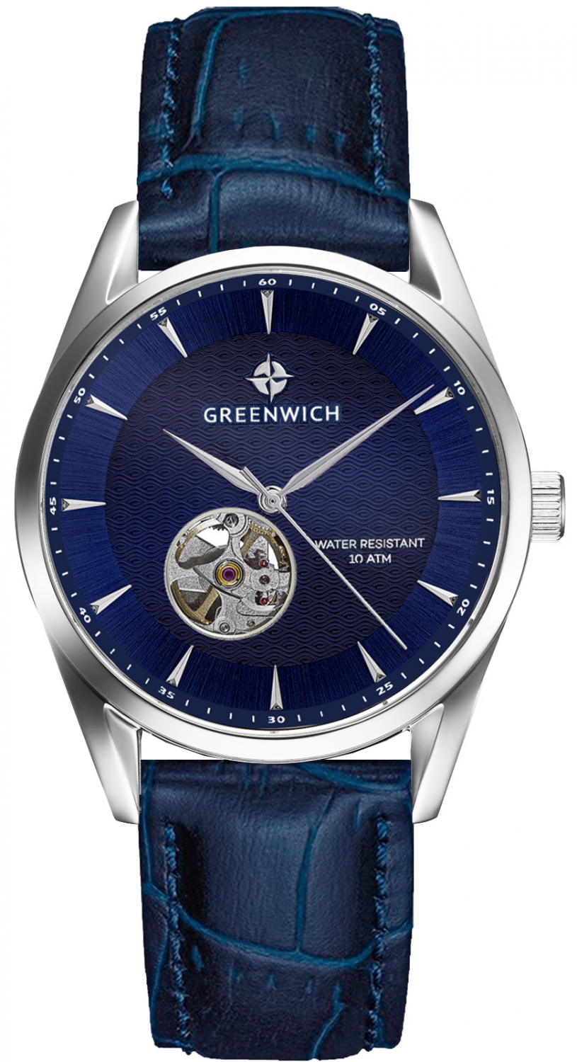В часах установлено минеральное стекло. Повышенная водостойкость равна 10 атмосфер. Корпус модели сделан из нержавеющей стали, ремешок — из натуральной кожи синего цвета. Стальная застежка и удобная заводная головка декорированы логотипом бренда Greenwich. Коллекция Good Luck Deep - это классические часы, которые будут уместны как в повседневной жизни, так и для особого случая.