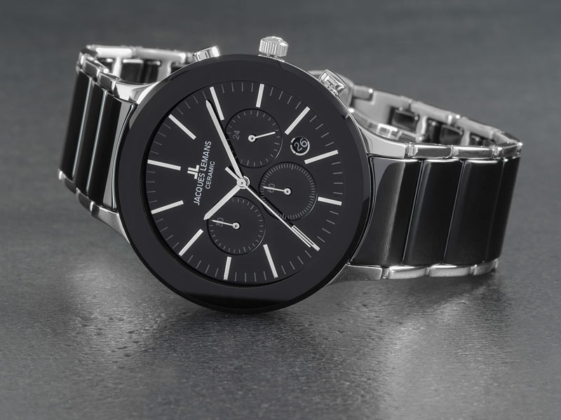 Наручные часы Jacques Lemans 1-1854A, коллекция High Tech Ceramic Dublin. Водозащита 5 ATM, браслет с керамическими вставками, кварцевый механизм. Диаметр корпуса 42 мм.