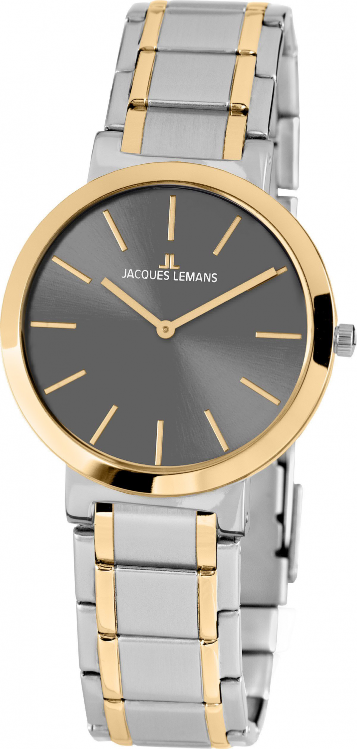 В дизайне этих кварцевых женских часов прежде всего привлекает отсутствие лишних деталей. Прямые линии часовой и минутной стрелок на графитовом циферблате дополняют строгие риски. Особая красота браслета прослеживается в сочетании полированных и матовых частей. Данную модель можно приобрести в стальном варианте с элементами деталей, выполенных с PVD-покрытием желтого золота.