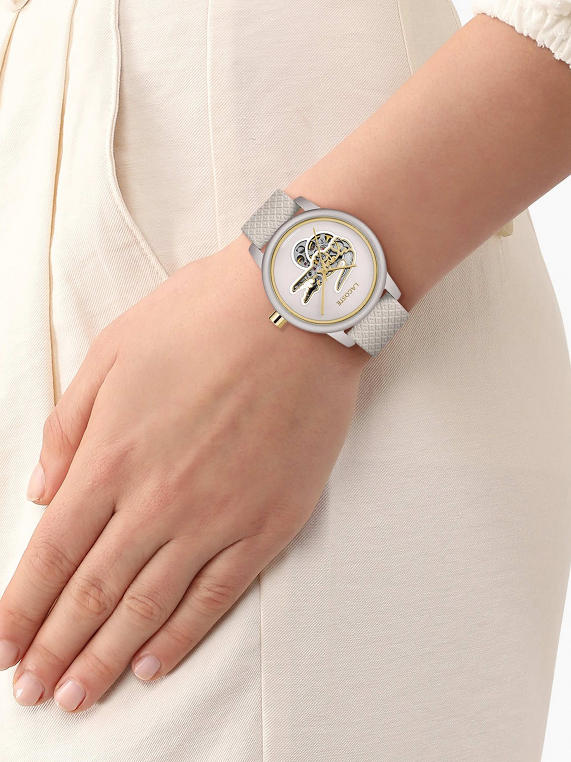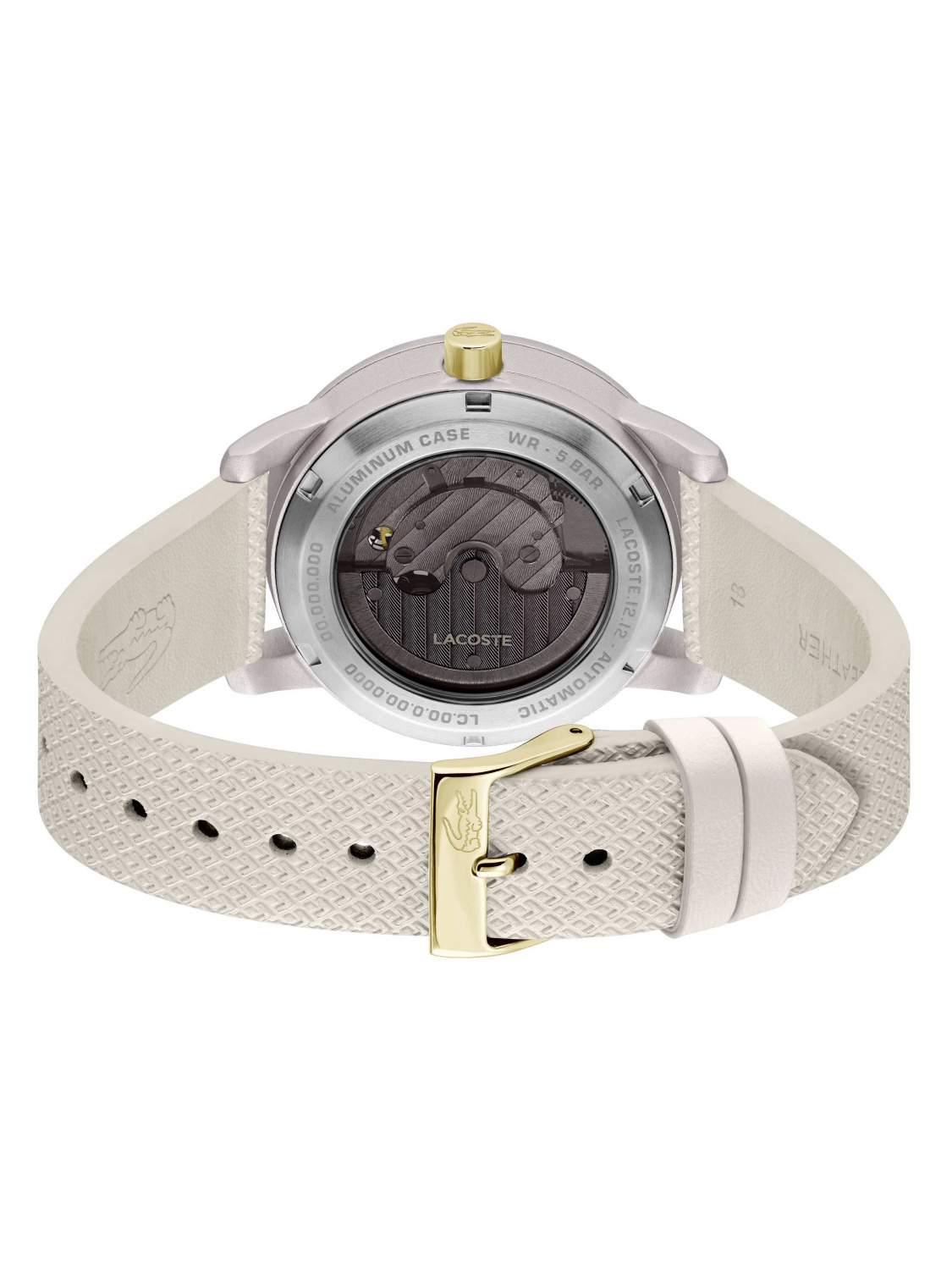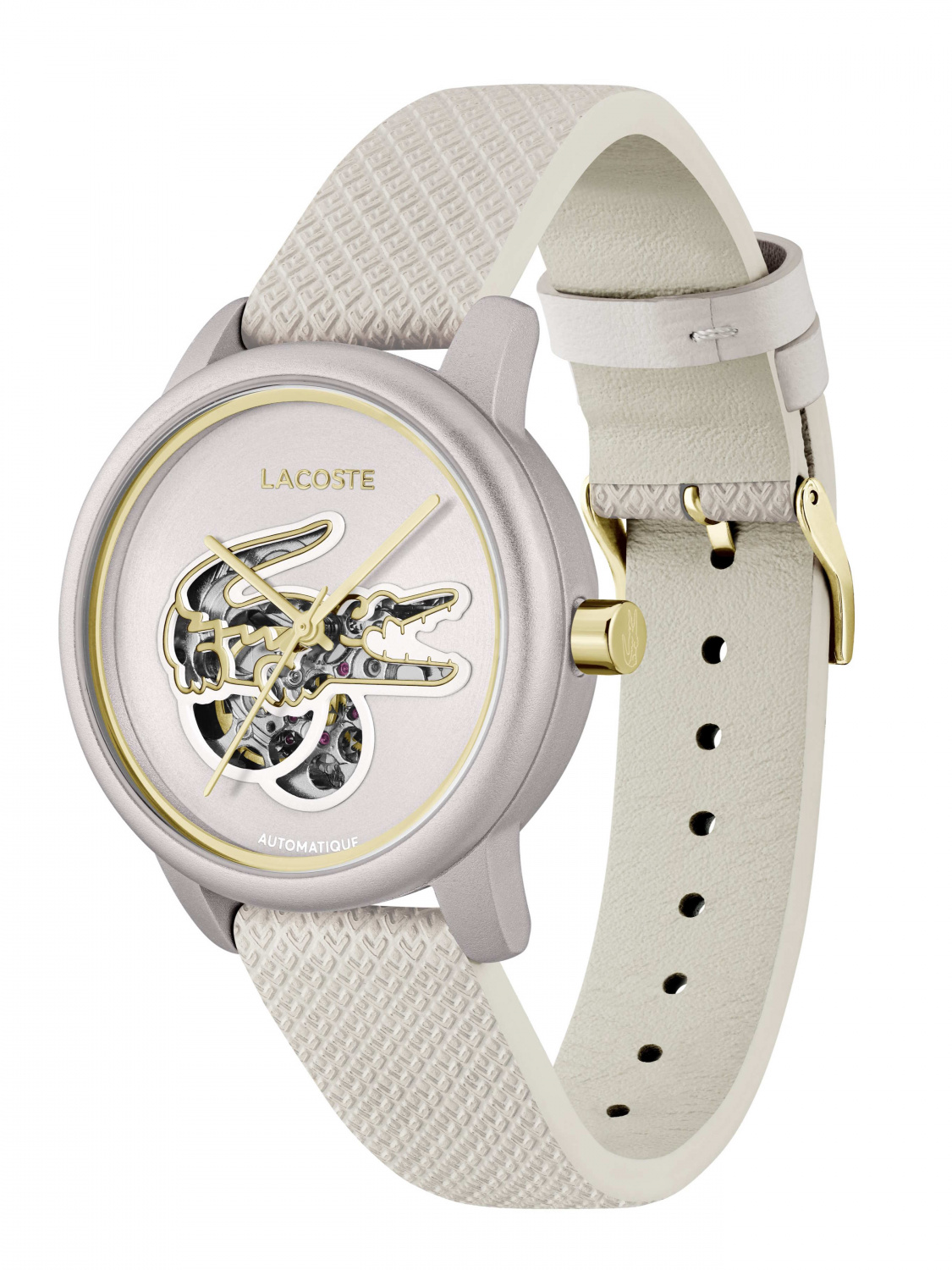 Круглый, стальной корпус с PVD покрытием. Ремешок из натуральной кожи с классической застежкой.