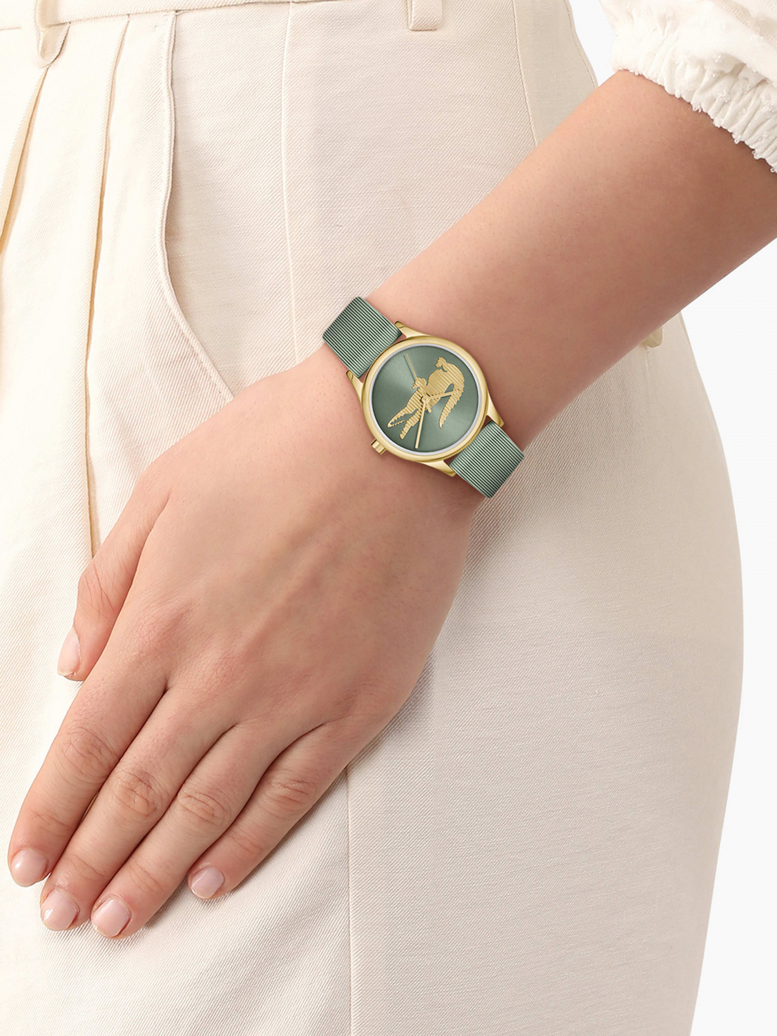 Циферблат украшен логотипом бренда и защищен минеральным стеклом устойчивым к мелким повреждениям и царапинам.