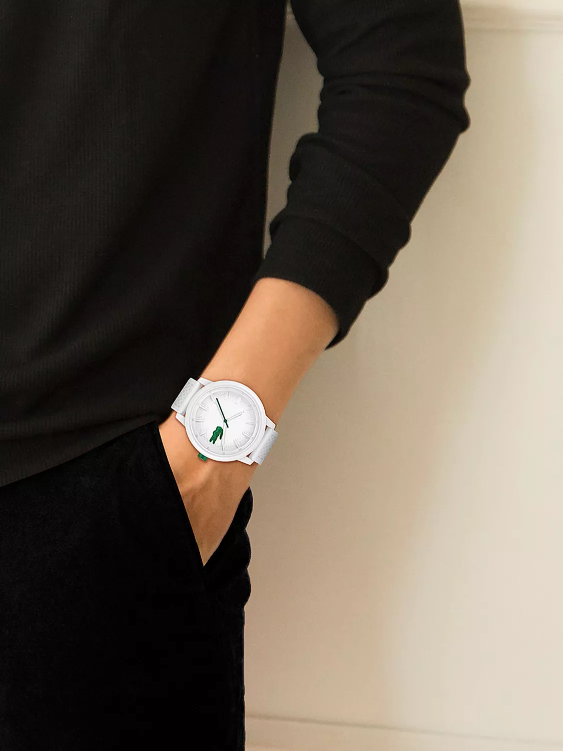 Кварцевые часы Lacoste.12.12 оснащены силиконовым ремешком с культовой текстурой хлопка Пике. На внешнем круге циферблата так же имеется текстура хлопок Пике.Часы имеют матовый безель, изготовленный из TR90 (смола с нейлоном) .
