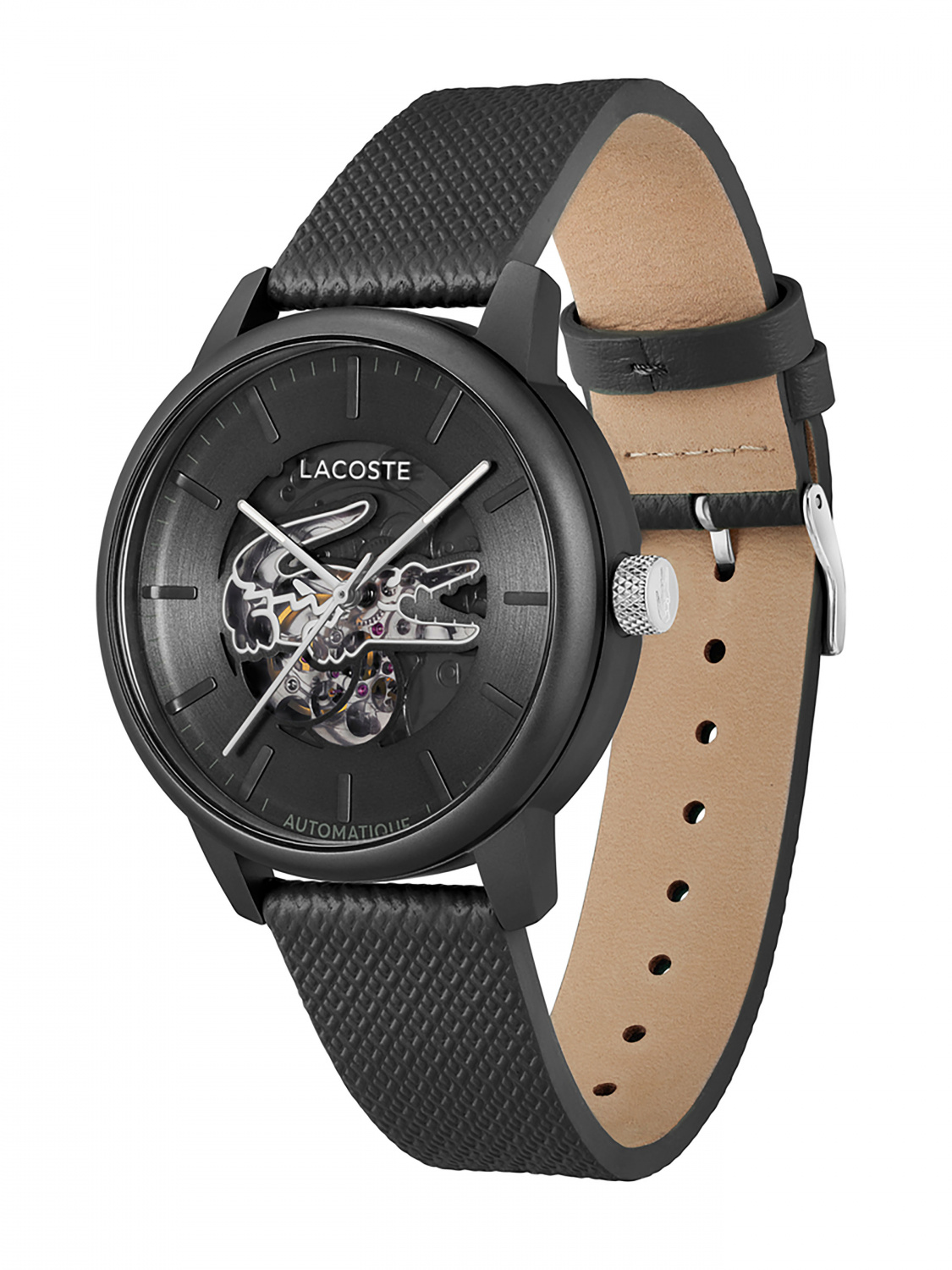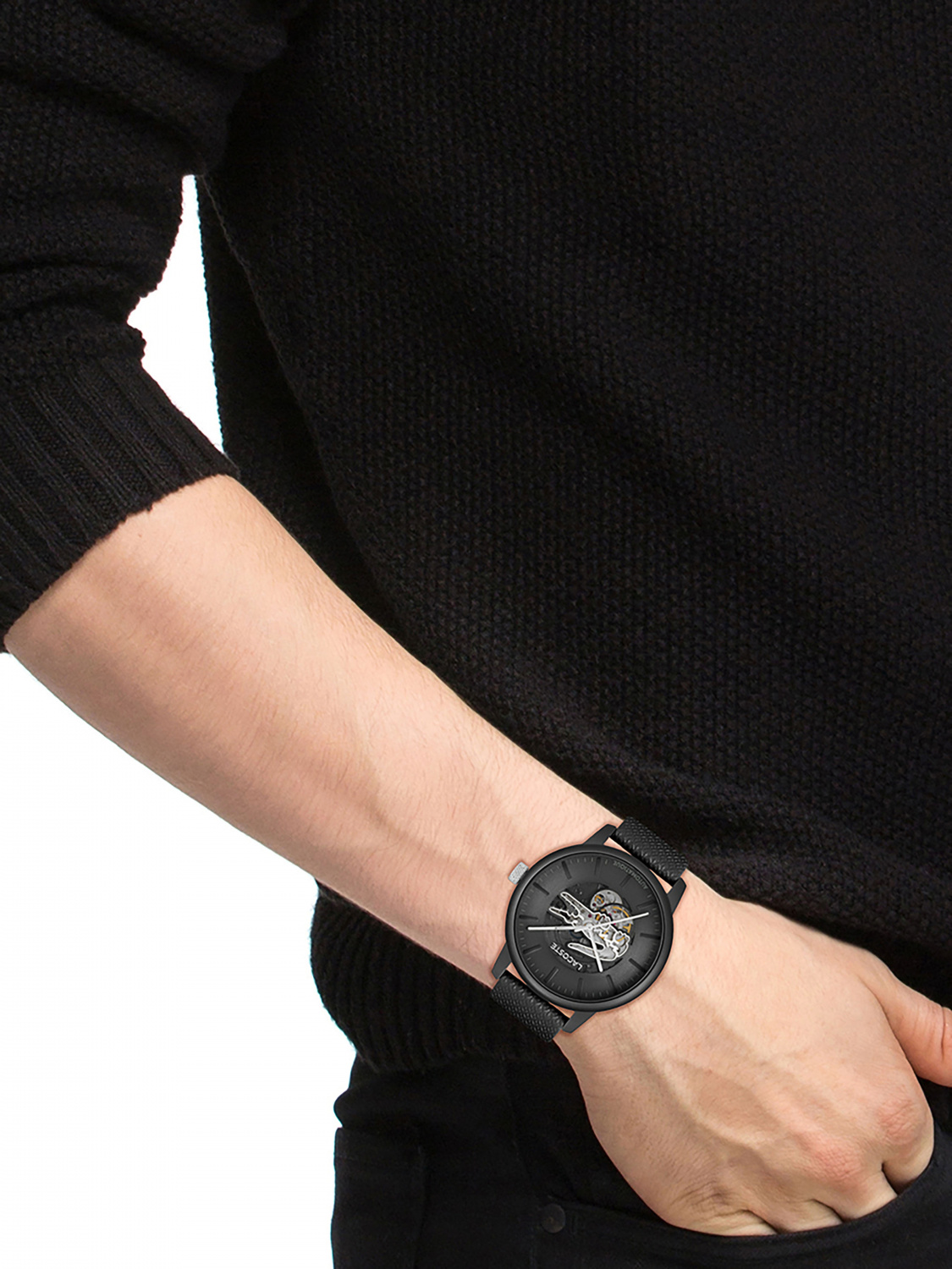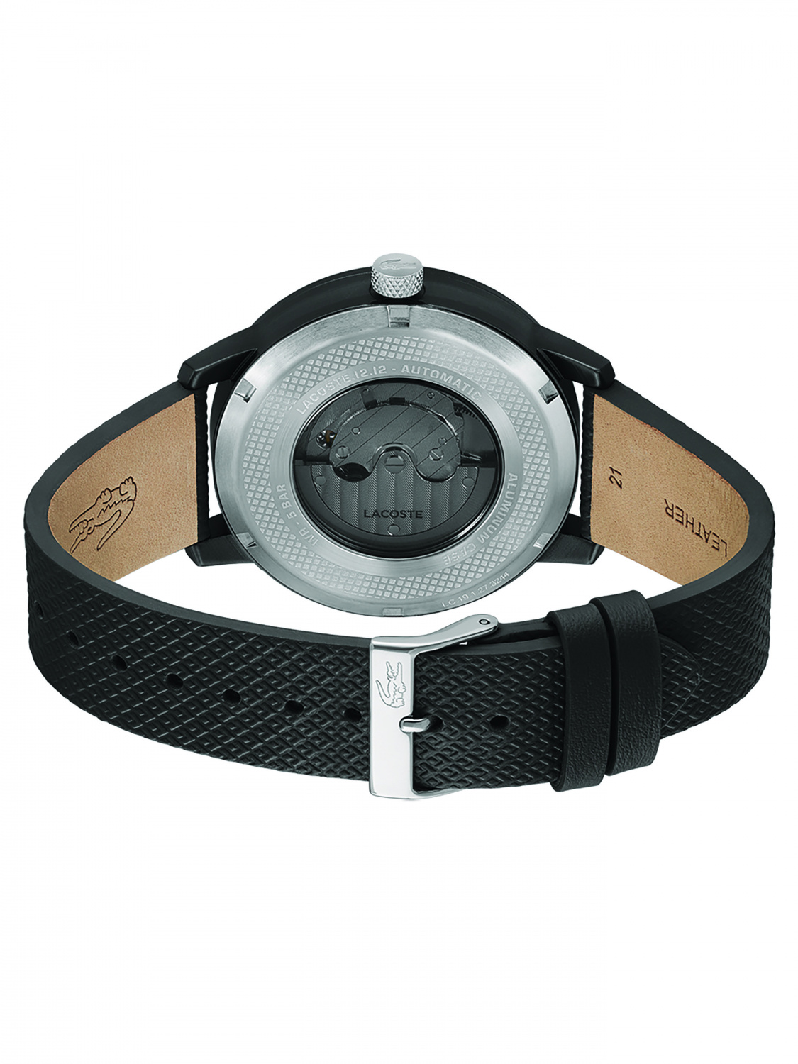 Круглый стальной корпус с PVD покрытием. Циферблат с логотипом бренда защищен минеральным стеклом устойчивым к появлени. царапин.