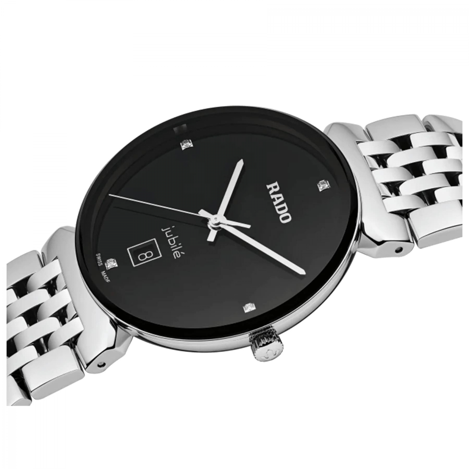 Швейцарские кварцевые часы Rado Florence Classic Diamonds R48912713. Сапфировое стекло устойчивое к мелким механическим повреждениям. Корпус изготовлен из нержавеющей стали. Безель с PVD-покрытием. Циферблат украшен бриллиантами. Окошко даты находится в положении 6 часов. Класс водозащиты: 50 метров, позволит защитить корпус от случайных брызг или капель дождя. Браслет из стали на застёжке-бабочке.