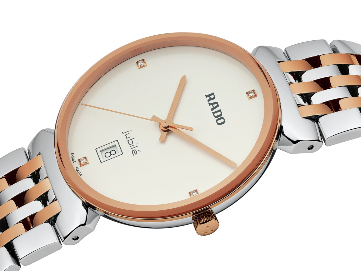 Швейцарские часы с бриллиантами Rado Florence Classic Diamonds R48912723, кварцевый механизм с высокой точностью. Сапфировое стекло устойчивое к появлению царапин, обладающее высокой прозрачностью. Класс водозащиты: 50 метров, позволит защитить корпус от случайных брызг или капель дождя. Матовый циферблат украшен бриллиантами. Заостренные прямоугольные стрелки в стиле Baton. Метки в виде точек. Окошко даты находится в положении 6 часов. Рифленая заводная головка. Надежный стальной браслет.