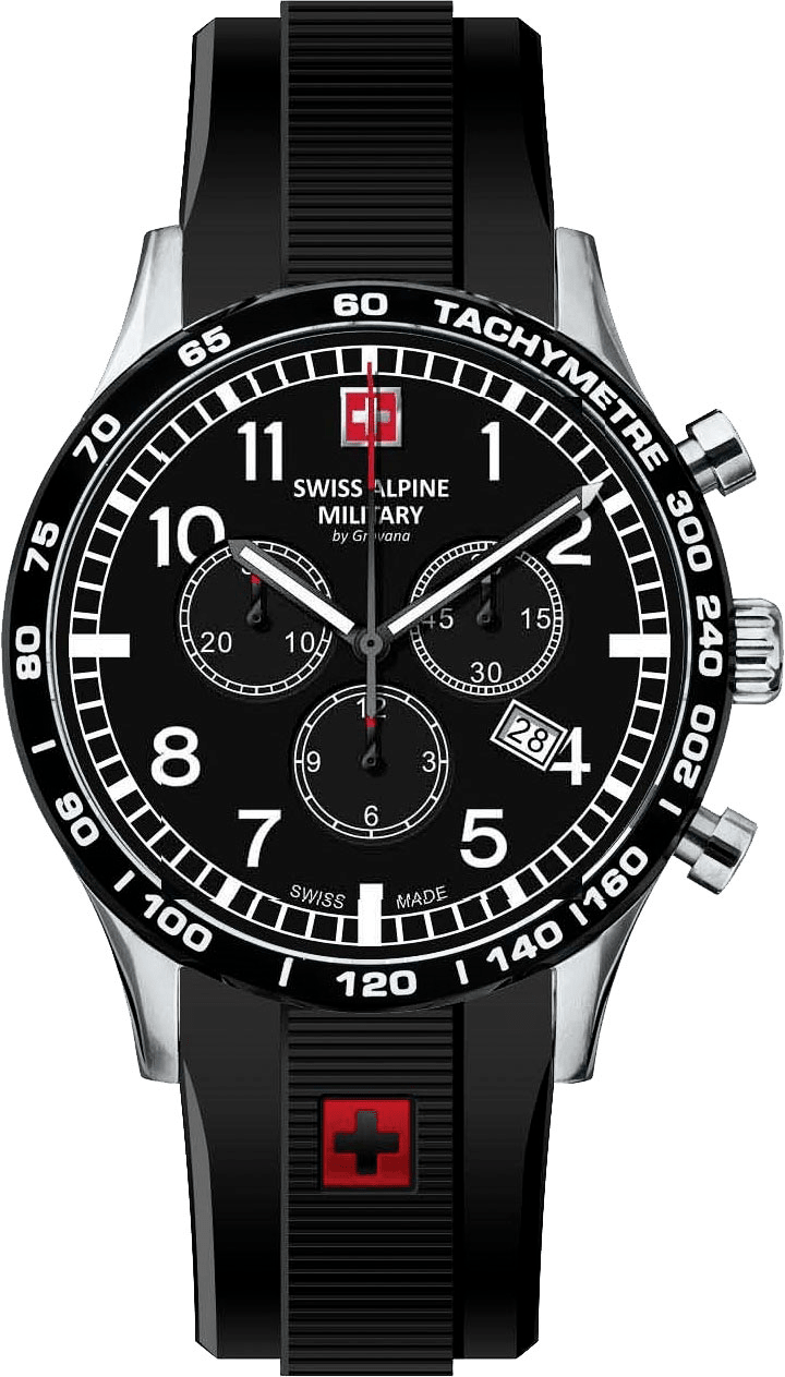 Эти стильные многофункциональные швейцарские часы изменят ваше представление о времени. Пора проявить свою индивидуальность! Aviator Chrono. Кварцевые часы-хронограф с секундомером и тахиметром. Счетчики на 30 минут и 12 часов. Секундомер с режимами ADD и SPLIT. Черный циферблат с метками в виде арабских цифр и штрихов. Окошко даты. Сапфировое стекло. Завинчивающаяся задняя крышка. Силиконовый ремешок с классической застежкой.