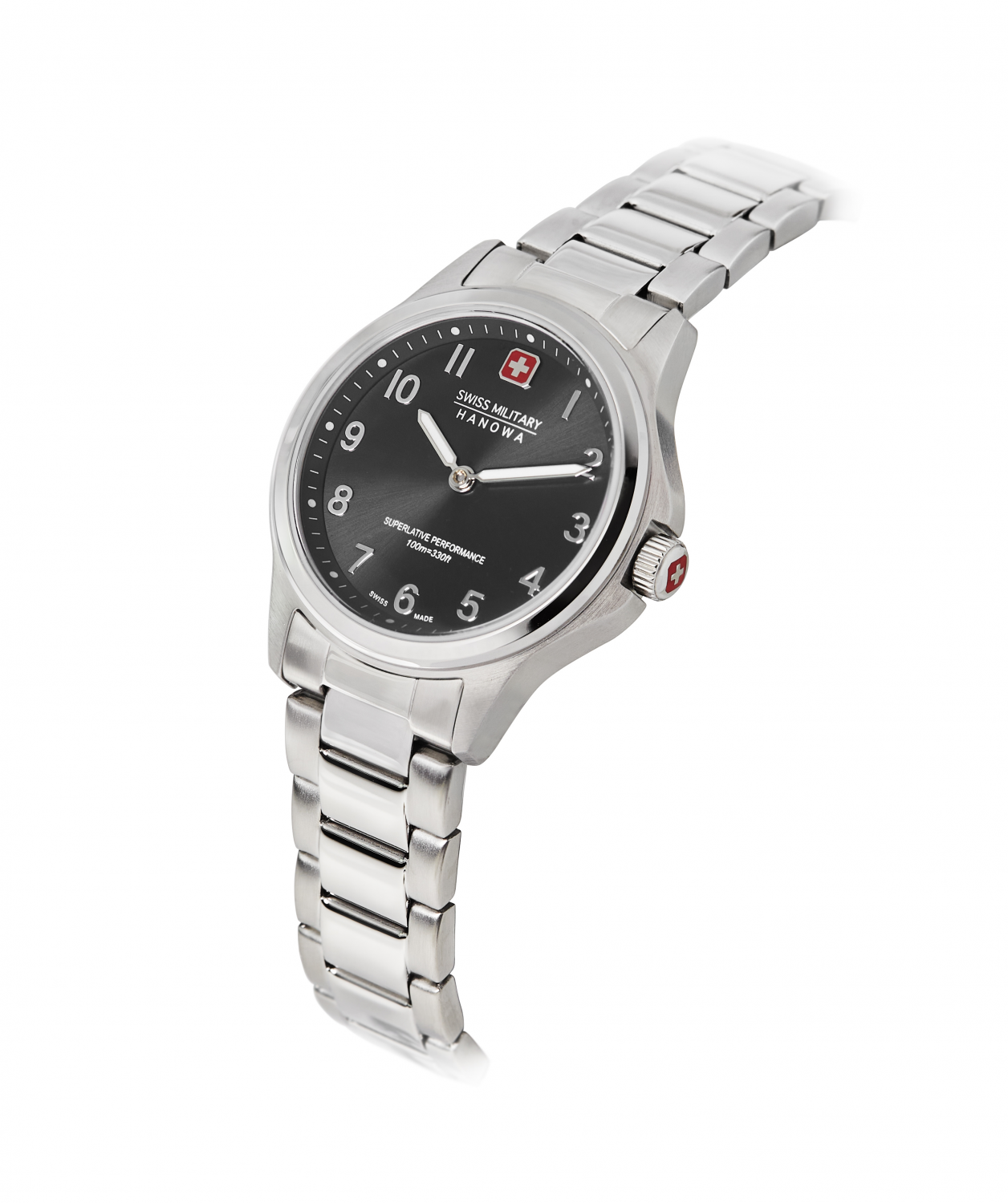 Швейцарские женские часы Swiss Military Hanowa Commander Lady SMWLG0002901. Кварцевый механизм. Корпус и браслет часов изготовлен из нержавеющей стали. Стрелки имеют люминесцентное покрытие, которое обеспечивает видимость в темноте,после кратковременной зарядки на свету. Сапфировое стекло. Браслет с раскладной застёжкой c фиксатором. Водозащита 10 АТМ/bar.
