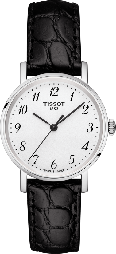 EVERYTIME SMALL. Стальной циферблат белого цвета на черном кожаном ремне.