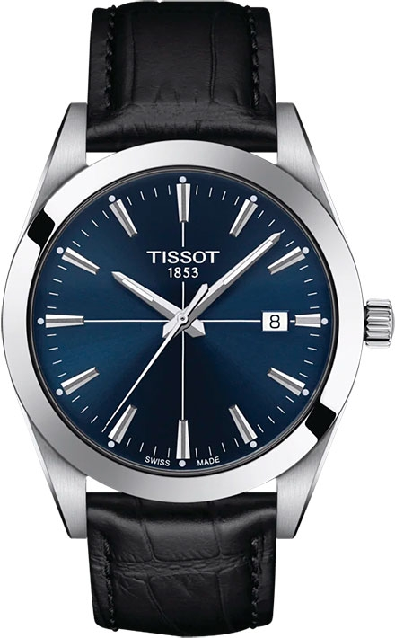 Мужские швейцарские часы Tissot Gentleman. Корпус часов выполнен из хирургической стали 316L. Кварцевый механизм : ETA F06.115. Сапфировое стекло устойчивое к появлению царапин. Дата в положении 3 часа. EOL (индикатор разряда батарейки). Люминесцентное покрытие на стрелках и метках. Ремошок из натуральной кожи, застёжка - бабочка. Диаметр 40 мм. Водозащита 10 bar.