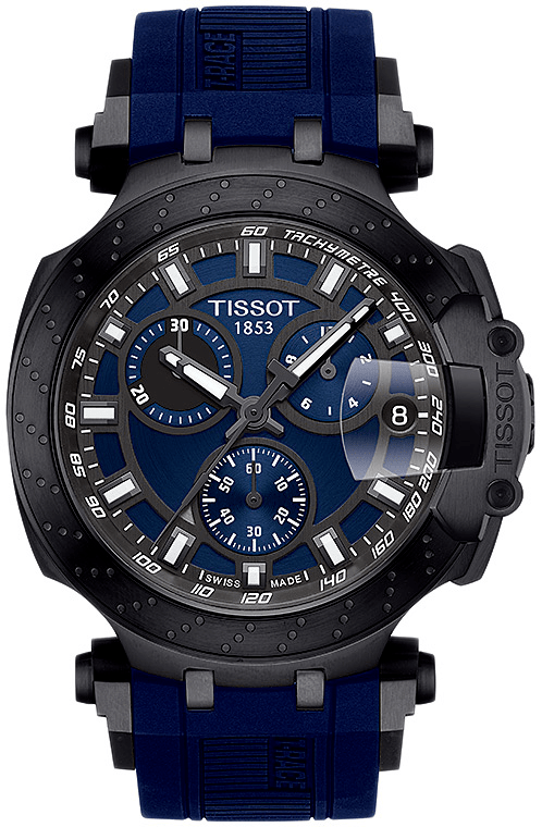 Часы серии Tissot T-Race Chronograph посвящены одному из самых захватывающих и скоростных видов спорта в мире. В основу конструкции часов легли рама и детали мотоциклов, которые нашли отражение в таких элементах, как безель в виде тормозного диска, счетчики в стиле приборной доски и следы протекторов шин на циферблате.