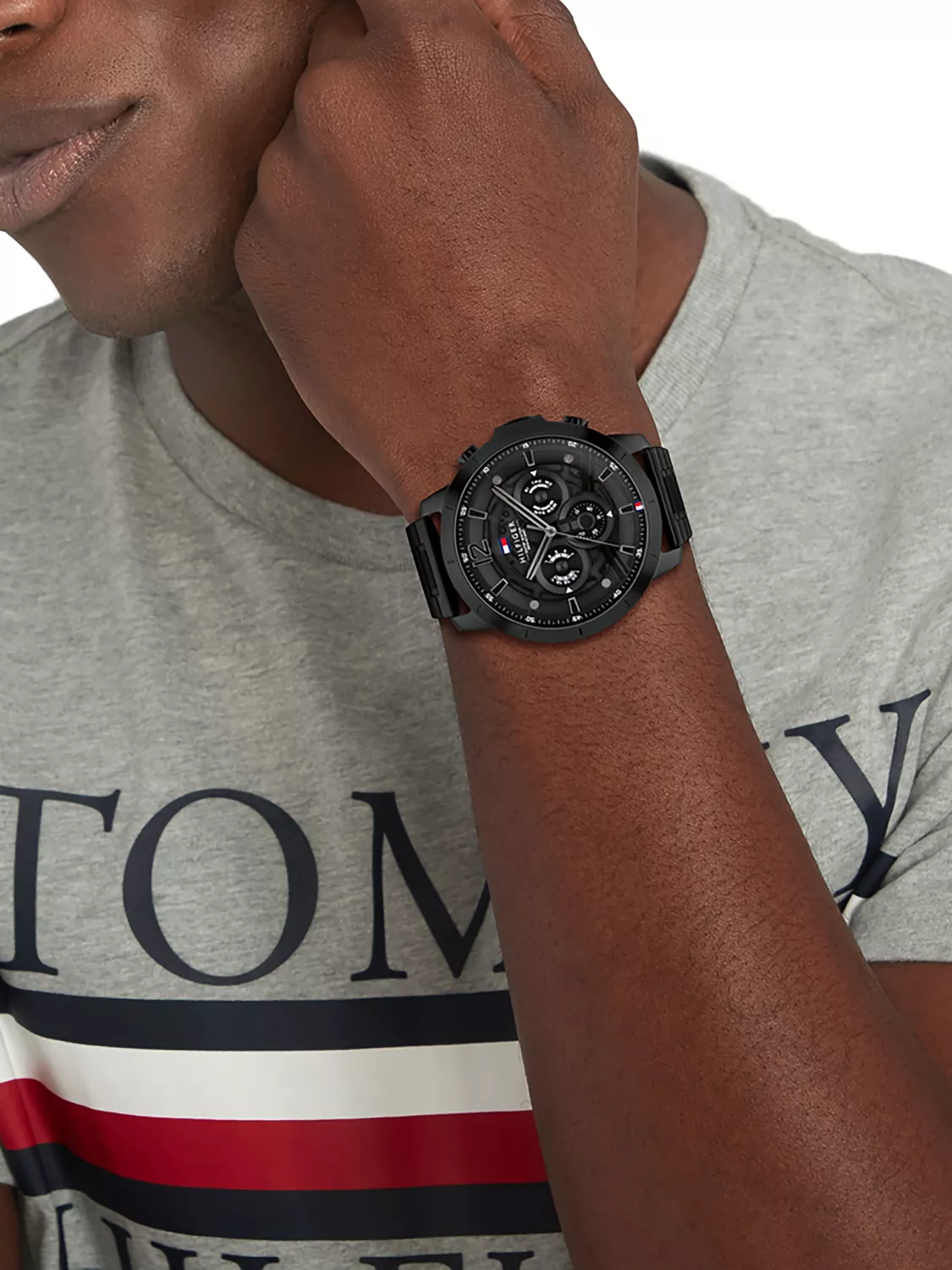 Мужские кварцевые часы из коллекции Luca.Круглый стальной корпус.12-ти и 24-х часовой формат времени. Дата и день недели вынесены на отдельные циферблаты. Циферблат с метками в виде штрихов,точек и арабской цифры 12.Корпус и браслет выполнены из стали с PVD покрытием. Браслет с традиционной застежкой.Водозащита 5 АТМ/bar.