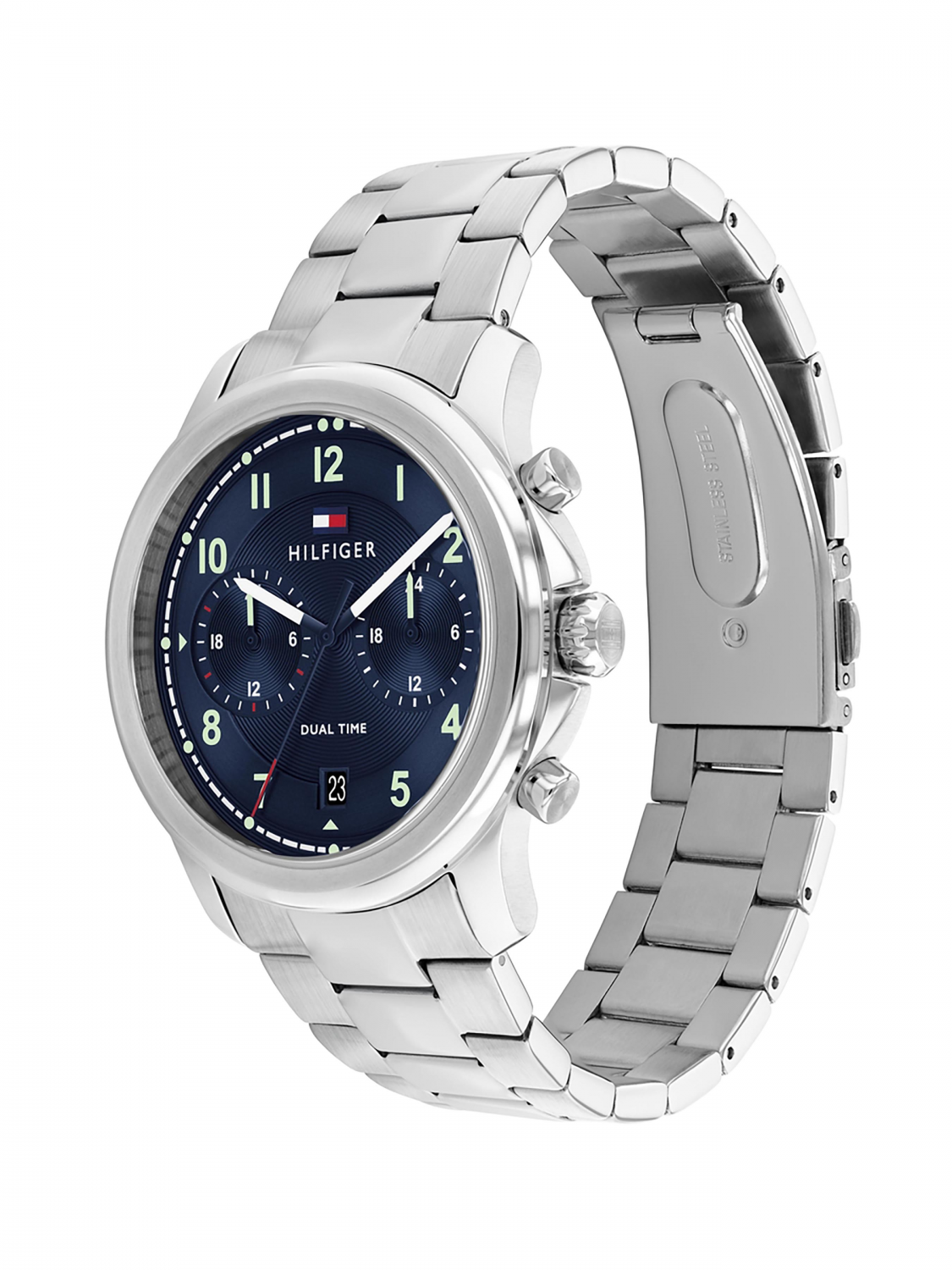 Мужские кварцевые часы коллекции Wesley.12-ти и 24-х часовой формат времени. Циферблат с метками в виде арабских цифр. Стрелки и метки с люминесцентным покрытием, которое светится в темноте. Минеральное стекло. Стальной браслет с раскладывающейся застежкой. Водозащита 5 АТМ/bar.