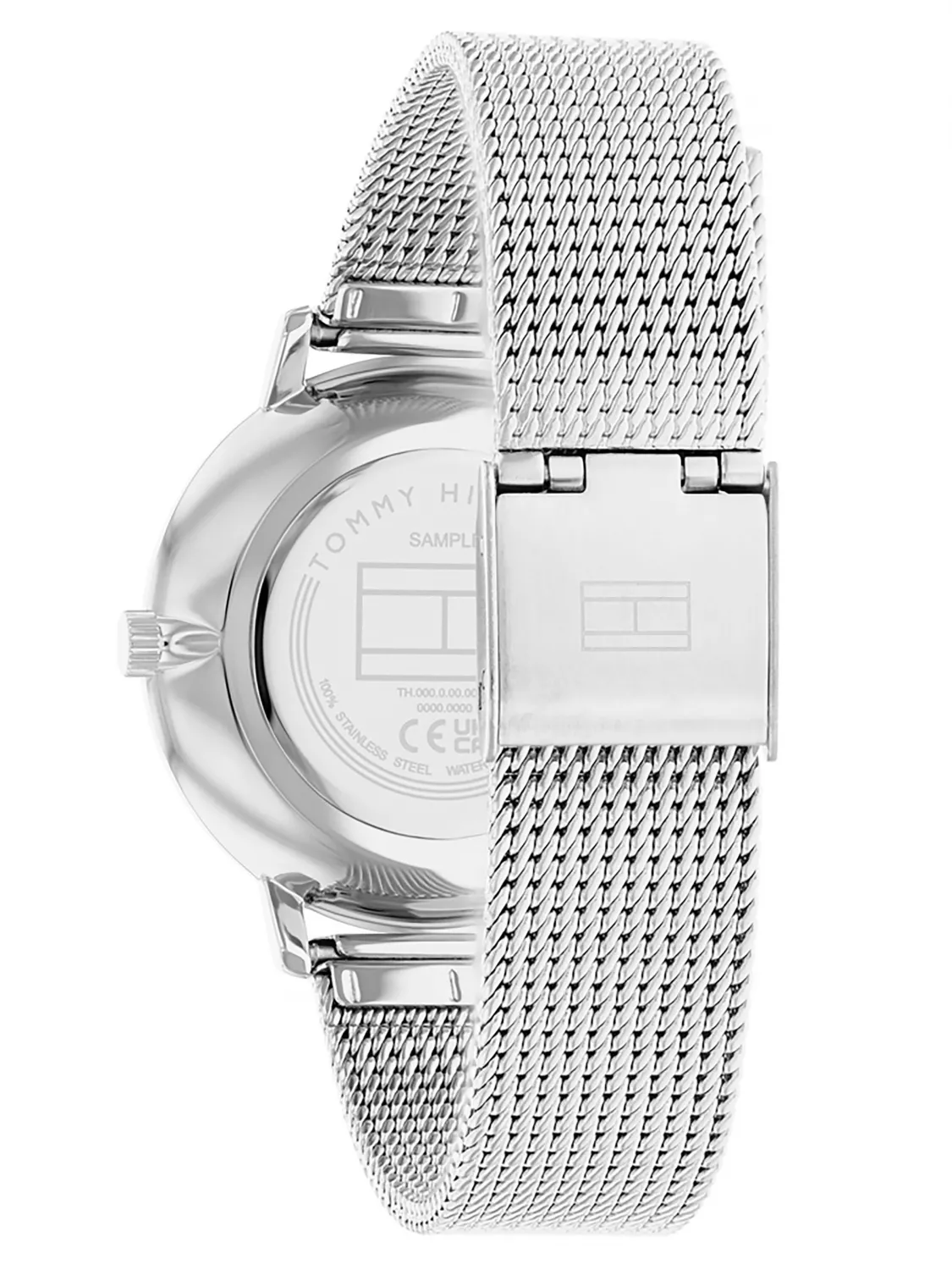 Женские кварцевые часы Tommy Hilfiger.Круглый стальной корпус. Внутри корпуса находится механизм Seiko Instruments Inc.Минеральное стекло.Браслет выполнен из стали,фиксируется на ювелирную застежку.Водозащита 3 АТМ.