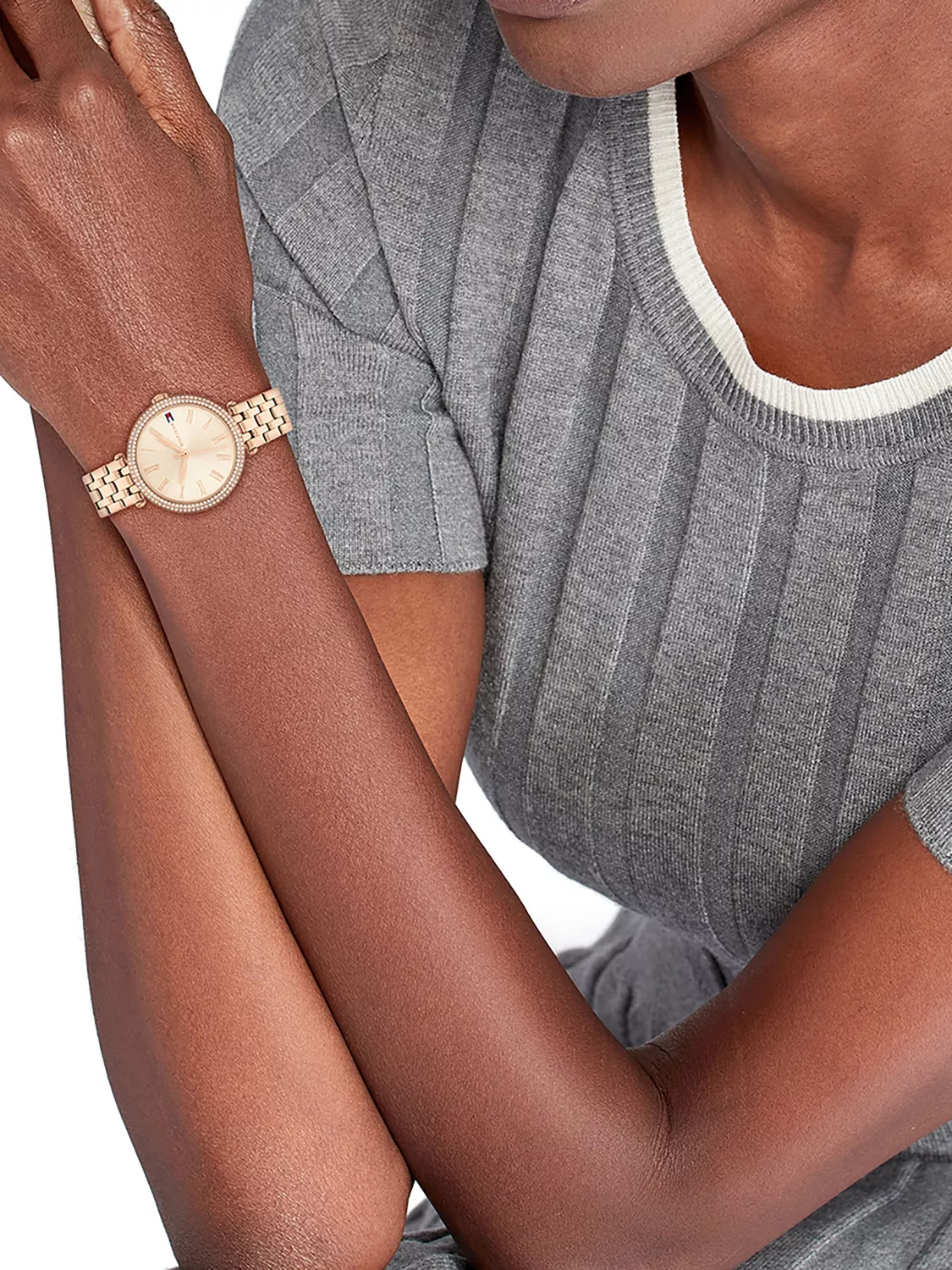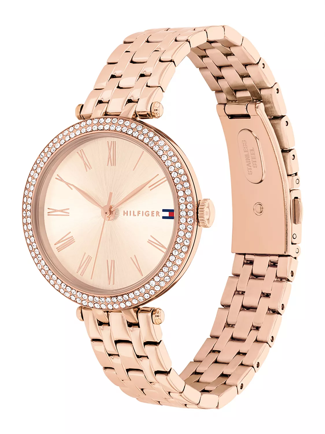 Женские кварцевые часы Tommy Hilfiger. Коллекция Natalie. Круглый стальной корпус. Безель оформлен кристаллами. Минеральное стело. Корпус и браслет выполнены из нержавеющей стали с PVD покрытием.Браслет с раскладной застежкой. Водозащита 3 АТМ/bar.