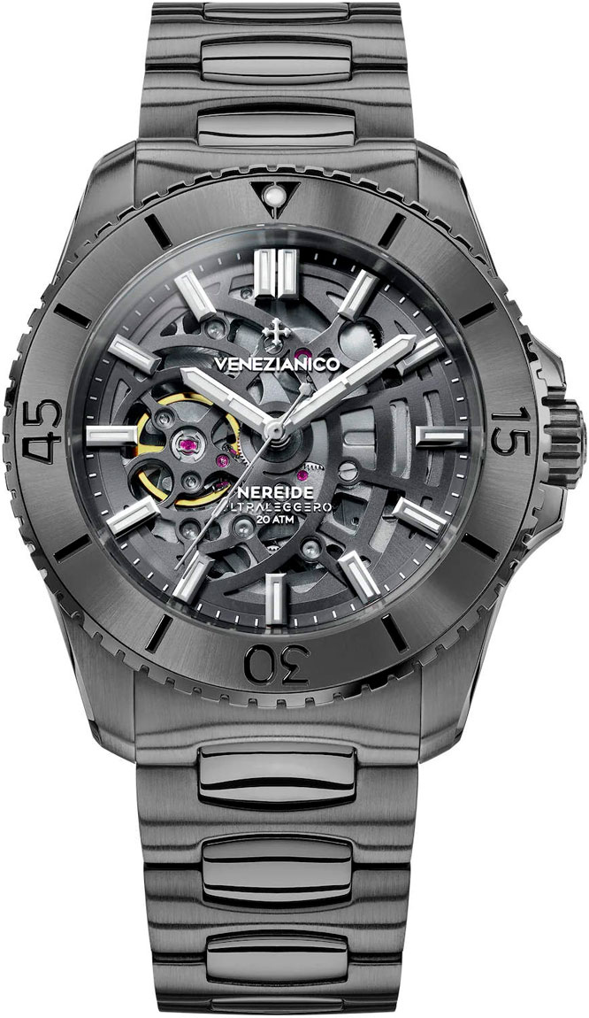 Модный скелетон на стальном браслете - прекрасно подойдут для современных мужчин, не желающих останавливаться на достигнутом. Скелетонизированные часы Nereide Ultraleggero. Вдохновением для создания модели послужил рисунок ''Витрувианский человек'', который создал Леонардо да Винчи в 1492 году. Витрувианский человек символизирует эпоху Возрождения и тесную связь между искусством и наукой. В механизме 24 камня, частота 21600 полуколебаний в час. Запас хода 41 час. Возможность ручного завода. Трехуровневый запатентованный циферблат выполнен по технологии Sunray (солнечные лучи). Метки в виде штрихов. Безель вращается на 120 щелчков в одном направлении. Задняя крышка крепится на 6-ти винтах и украшена выгравированным изображением Витрувианского человека. Индивидуальный серийный номер. Завинчивающаяся заводная головка с защитой. Браслет Canova с раскладывающейся застежкой.